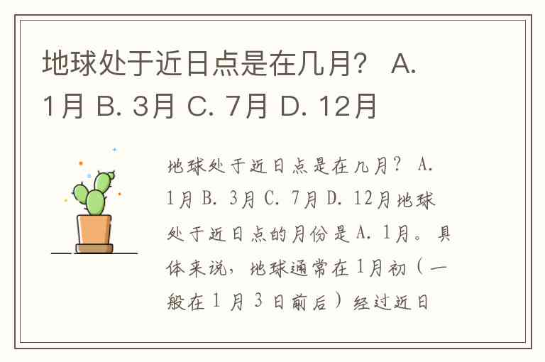 地球处于近日点的月份是 A. 1月。