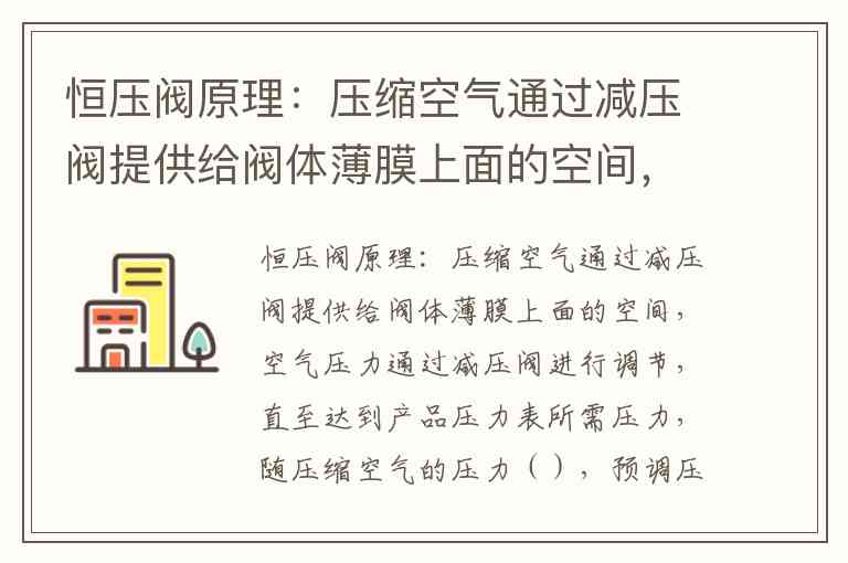 恒压阀原理:压缩空气通过减压阀提供给阀体薄膜上面的空间,空气压力通过减压阀进行调节,直至达到产品压力表所需压力,随压缩空气的压力(),预调压力() A. 变大,变大 B. 变大,变小 C. 变小,变大 D. 变化,不变