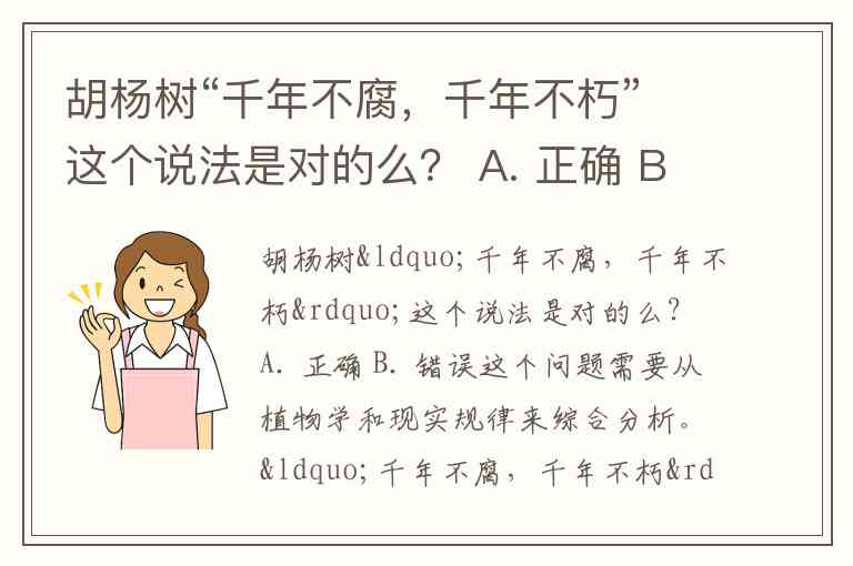 胡杨树“千年不腐,千年不朽”这个说法是对的么? A. 正确 B. 错误