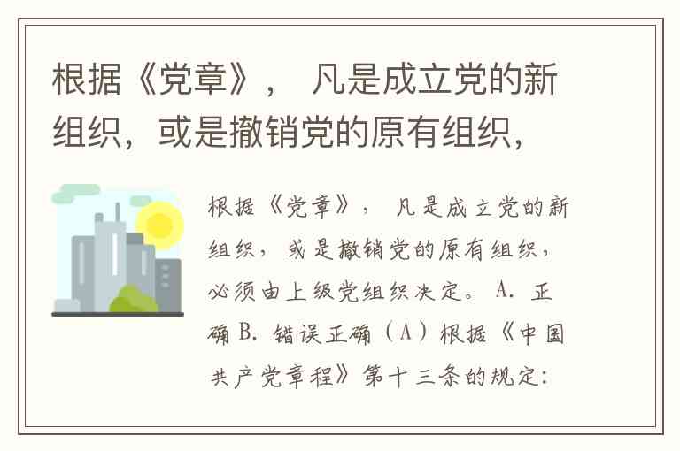 根据《党章》, 凡是成立党的新组织,或是撤销党的原有组织,必须由上级党组织决定。 A. 正确 B. 错误