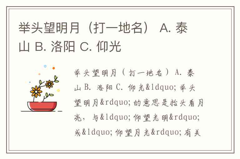举头望明月(打一地名) A. 泰山 B. 洛阳 C. 仰光