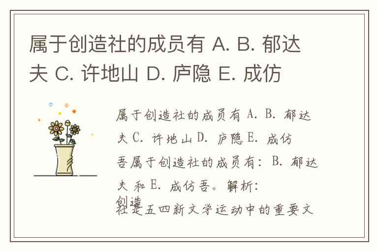 属于创造社的成员有 A. B. 郁达夫 C. 许地山 D. 庐隐 E. 成仿吾