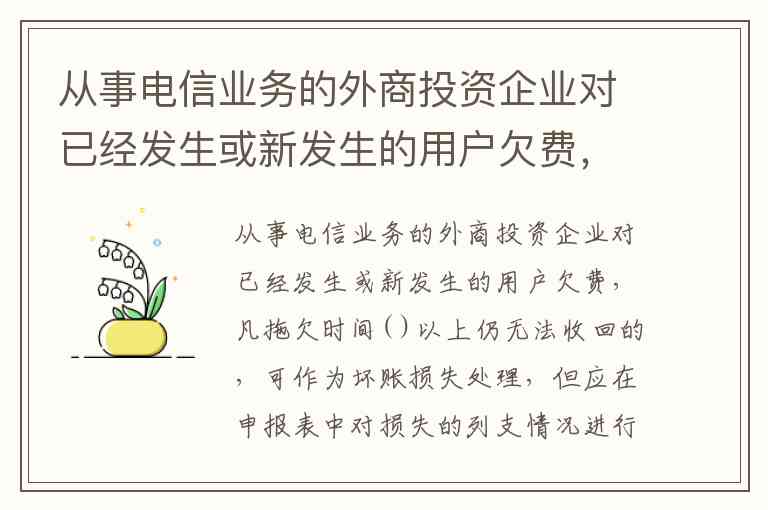 “从事电信业务的外商投资企业对已发生或新发生的用户欠费,凡拖欠时间1年以上仍无法收回的,可作为坏账损失处理,但企业应就欠费损失情况作出专项说明,并出具中介机构出具的专项审计报告。”