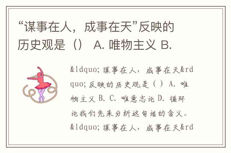 “谋事在人,成事在天”反映的历史观是() A. 唯物主义 B. C. 唯意志论 D. 循环论