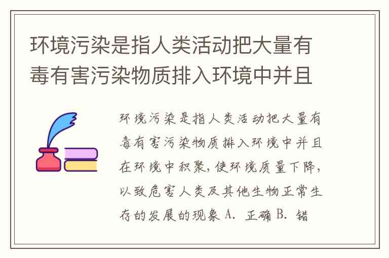 环境污染是指人类活动把大量有毒有害污染物质排入环境中并且在环境中积聚,使环境质量下降,以致危害人类及其他生物正常生存的发展的现象 A. 正确 B. 错误