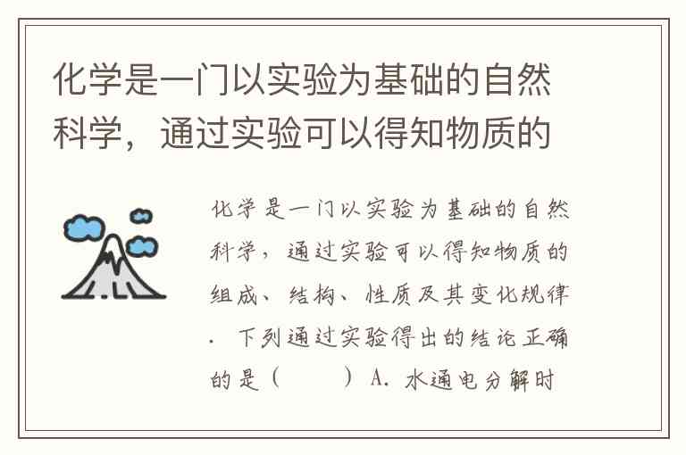 化学是一门以实验为基础的自然科学,通过实验可以得知物质的组成、结构、性质及其变化规律.下列通过实验得出的结论正确的是( ) A. 水通电分解时生成氢气和氧气,说明水是由氢气和氧气组成 B. 通过在显微镜下观察木炭,得知木炭具有疏松多孔的结构 C. 天然气能在氧气中燃烧,说明氧气具有可燃性 D. 将石蕊试液滴入稀硫酸中溶液显红色,说明石蕊试液能使酸变红