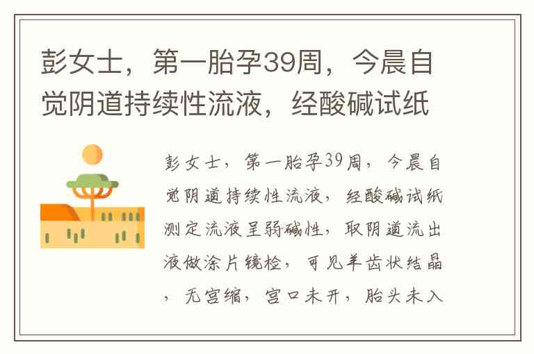 涂片见羊齿状结晶 → 可以确认胎膜早破(PROM)