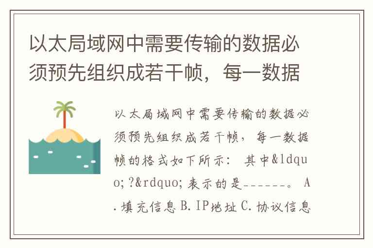 以太局域网中需要传输的数据必须预先组织成若干帧,每一数据帧的格式如下所示: 其中“?”表示的是______。 A.填充信息 B.IP地址 C.协议信息 D.有效载荷 A. B. C. D.