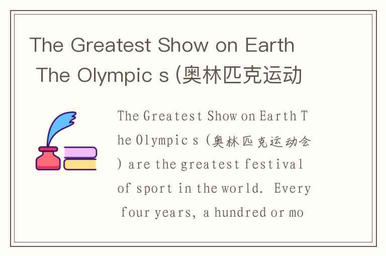 The Greatest Show on Earth The Olympic s (奥林匹克运动会) are the greatest festival of sport in the world.Every four years, a hundred or more countries send their best sportsmen to compete (竞赛) for the highest honors in sport.As many as 6,000 people take part in over 20 sports.For the winners, there are gold medals(奖牌) and glory.But there is honor, too, for all who compete, win or lose.That is in spirit of the Olympics—to take part is what matters. The Olympic s always start in a bright color and action.The teams of all the nations parade in the opening ceremony(仪式) and march round the track.The custom is for the Greek team to march in first.For it was in Greece that the Olympics began.The team of the country where the s are being held—the host country—marches in last. The runner with the Olympic torch (火炬) then enters the stadium(体育场) and lights the flame.A sportsman from the host country takes the Olympic oath (誓言) on behalf of all the competitors(竞赛者.The judges and officials also take an oath.After the sportsmen march out of the stadium the host country puts on a wonderful display. The competitions begin the next day.There are usually more than twenty sports in the s.The rule is that there must be at least fif.The main s are in track and field (田径), but it is a few days before these sports start.Each day the competitors take part in a different sport—riding, shooting, swimming, and cross-country running.Points are gained for each .Medals are awarded (颁发) for the individual winners and for national teams. More and more women are taking part in the s.They first competed in 1900, in tennis and golf, which are no longer held in the Olympics.Women's swimming s were introduced in 1912.But it was not until 1928 that there were any track and field s for women.Now, they compete in all but half a dozen of the sports.In horse riding, shooting, and boat racing, they may compete in the same s as the men. What is the basic honor in taking part in the Olympic s?重试 错误原因 A.重试 错误原因 To win medals.重试 错误原因 B.重试 错误原因 To break world record.重试 错误原因 C.重试 错误原因 To win first places.重试 错误原因 D.重试 错误原因 To take part in the s.重试 错误原因