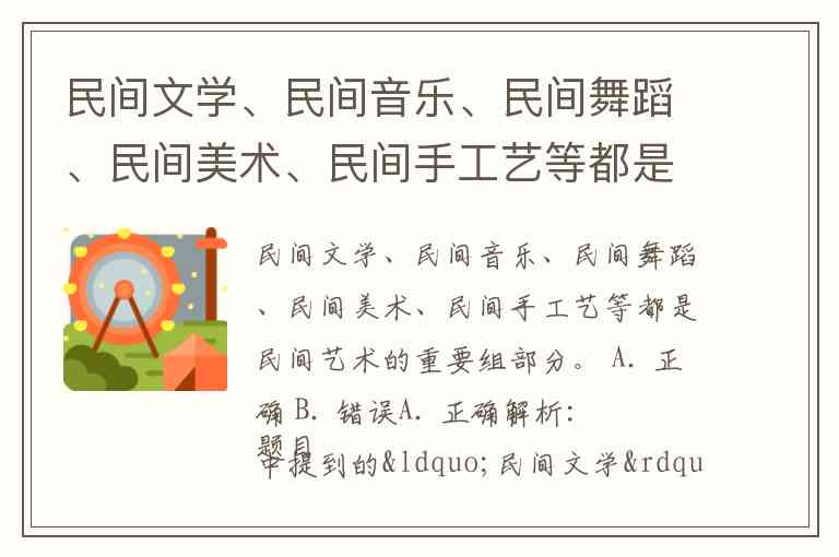 民间文学、民间音乐、民间舞蹈、民间美术、民间手工艺等都是民间艺术的重要组部分。 A. 正确 B. 错误