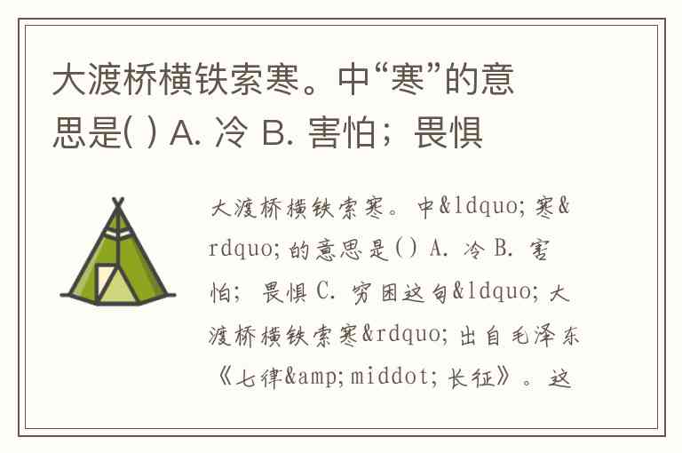 大渡桥横铁索寒。中“寒”的意思是( ) A. 冷 B. 害怕;畏惧 C. 穷困