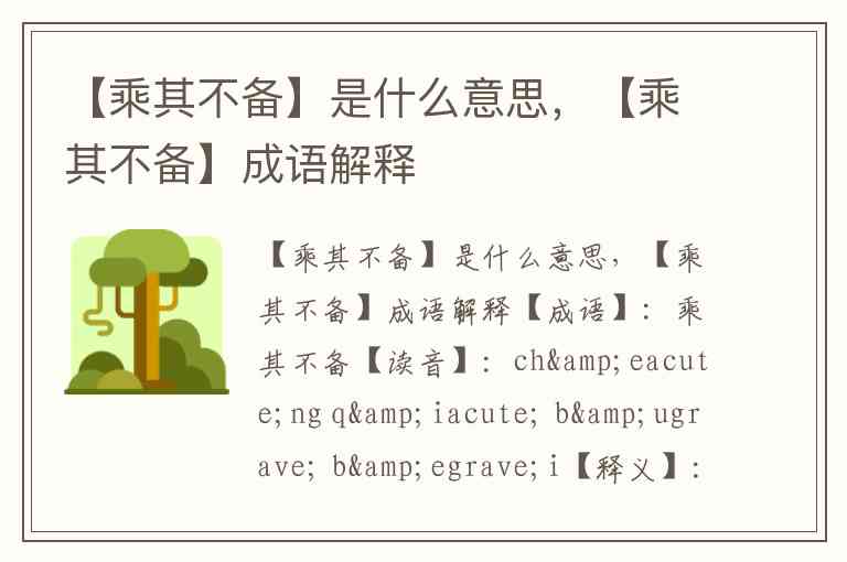 【释义】:指趁着对方没有防备的时候(采取行动)。“乘”即趁着、利用;“其”指代对方;“不备”即没有准备、未加防范。