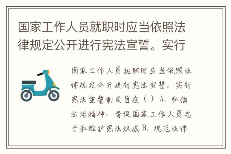 国家工作人员就职时应当依照法律规定公开进行宪法宣誓。实行宪法宣誓制度旨在() A. 弘扬法治精神,督促国家工作人员忠于和维护宪法权威 B. 规范法律程序,增强国家机关及其工作人员的法律地位 C. 强化宪法监督,推进中国特色社会主义法律体系的建设