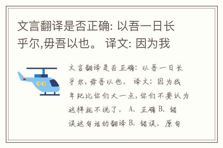 文言翻译是否正确: 以吾一日长乎尔,毋吾以也。 译文: 因为我年纪比你们大一点,你们不要认为这样就不说了。 A. 正确 B. 错误