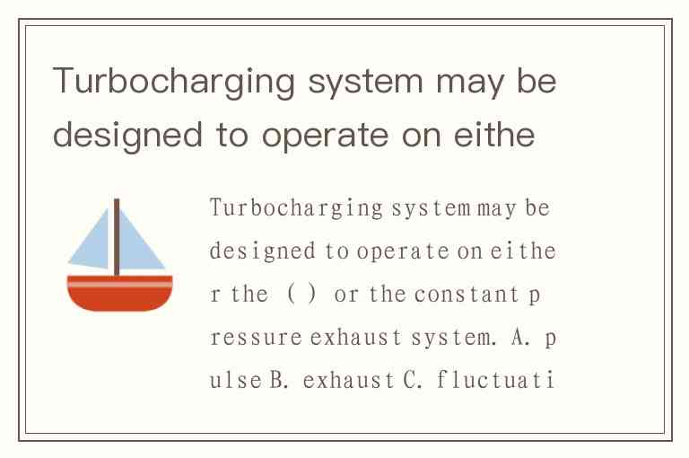 Turbocharging system may be designed to operate on either the () or the constant pressure exhaust system. A. pulse B. exhaust C. fluctuating D. hunting