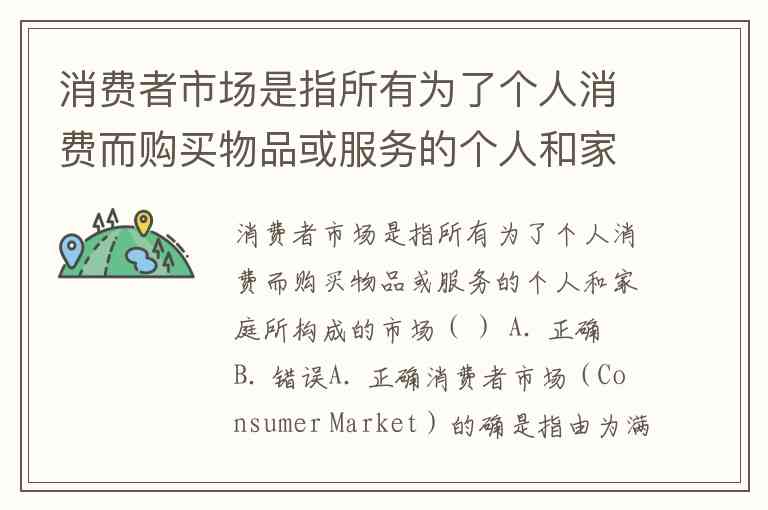 消费者市场是指所有为了个人消费而购买物品或服务的个人和家庭所构成的市场( ) A. 正确 B. 错误