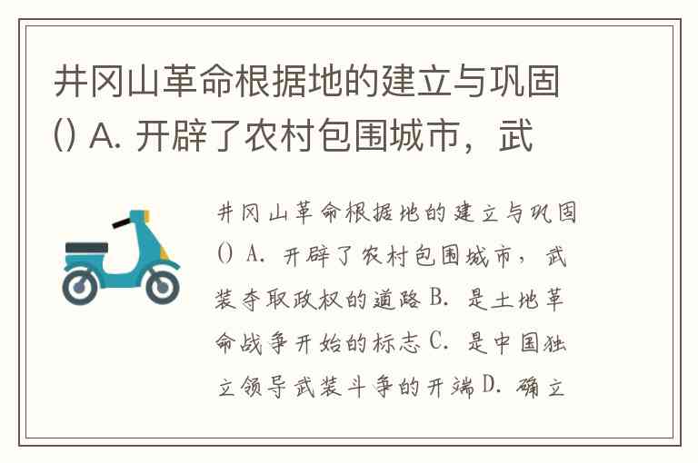 因此,井冈山革命根据地最重要的历史意义在于A. 开辟了农村包围城市,武装夺取政权的道路。