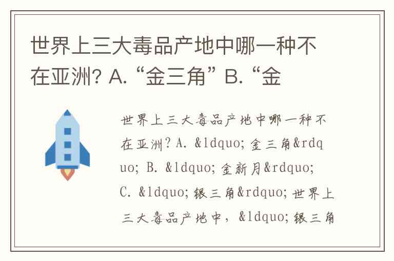 世界上三大毒品产地中哪一种不在亚洲? A. “金三角” B. “金新月” C. “银三角”