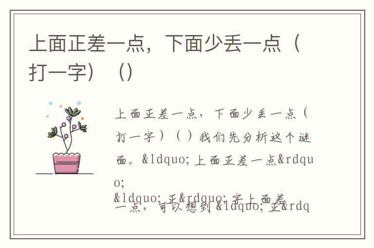 上面正差一点,下面少丢一点(打一字)()