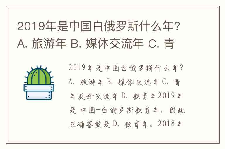 2019年是 中国-白俄罗斯教育年,因此正确答案是 D. 教育年。