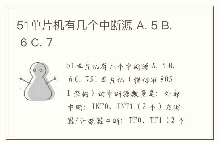 51单片机有几个中断源 A. 5 B. 6 C. 7