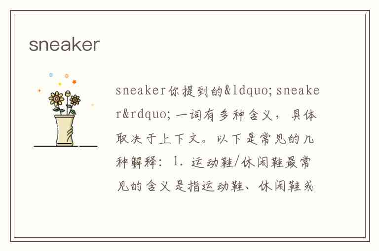 你提到的“sneaker”一词有多种含义,具体取决于上下文。以下是常见的几种解释: