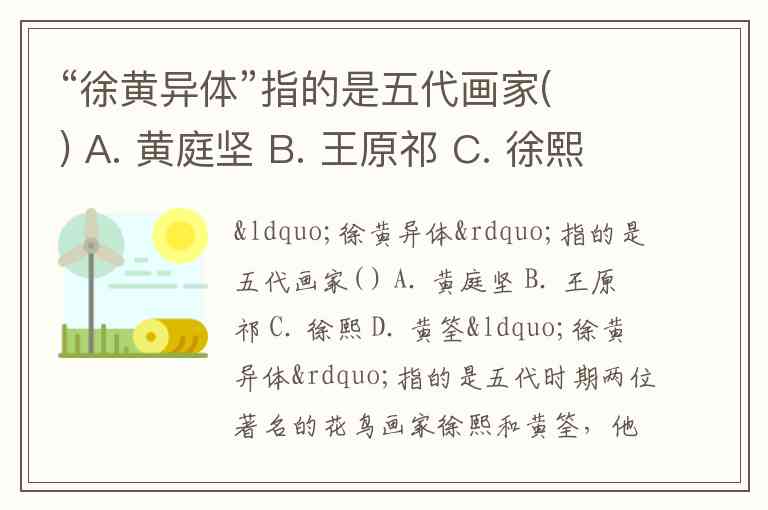“徐黄异体”指的是五代画家( ) A. 黄庭坚 B. 王原祁 C. 徐熙 D. 黄筌