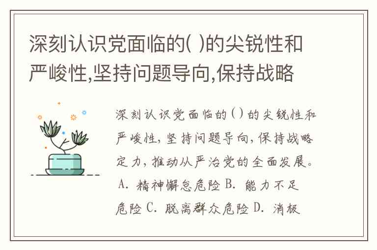 深刻认识党面临的( )的尖锐性和严峻性,坚持问题导向,保持战略定力,推动从严治党的全面发展。 A. 精神懈怠危险 B. 能力不足危险 C. 脱离群众危险 D. 消极腐败危险