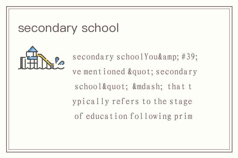 You've mentioned "secondary school" — that typically refers to the stage of education following primary/elementary school, usually for students around ages 11–18, depending on the country.