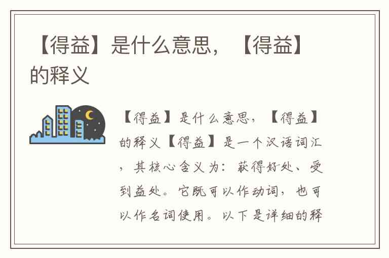 【得益】是一个汉语词汇,其核心含义为:获得好处、受到益处。它既可以作动词,也可以作名词使用。