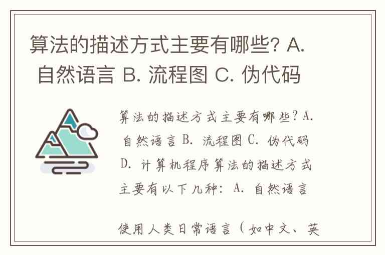 算法的描述方式主要有哪些? A. 自然语言 B. 流程图 C. 伪代码 D. 计算机程序