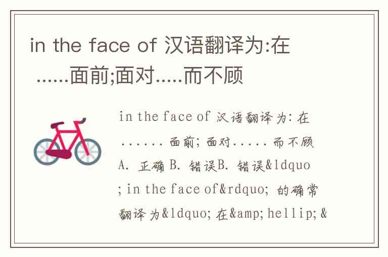 “in the face of” 的确常翻译为“在……面前;面对……”,表示面临某种困难或不利情况,例如:in the face of danger(面对危险)。