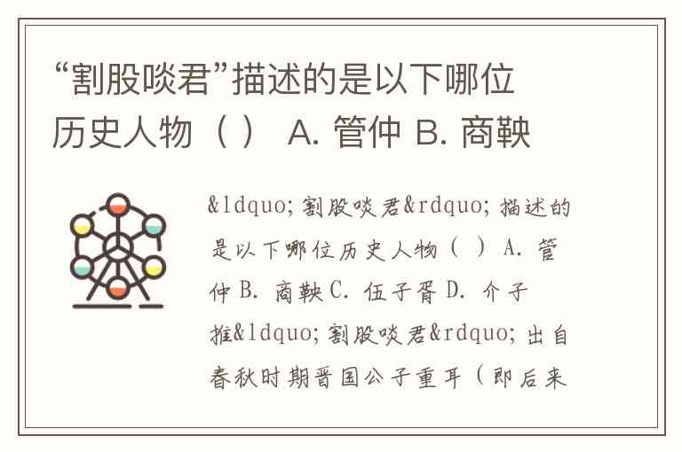 “割股啖君”描述的是以下哪位历史人物( ) A. 管仲 B. 商鞅 C. 伍子胥 D. 介子推