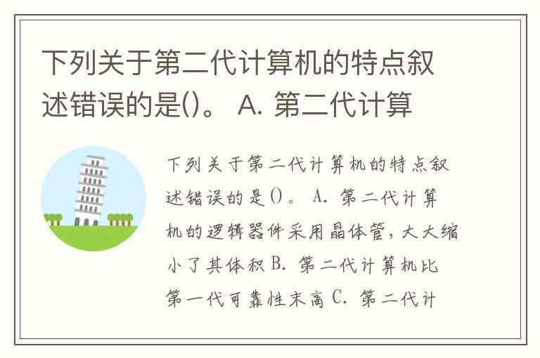 正确答案是 B. 第二代计算机比第一代可靠性末高。