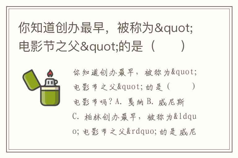 你知道创办最早,被称为"电影节之父"的是( )电影节吗? A. 戛纳 B. 威尼斯 C. 柏林