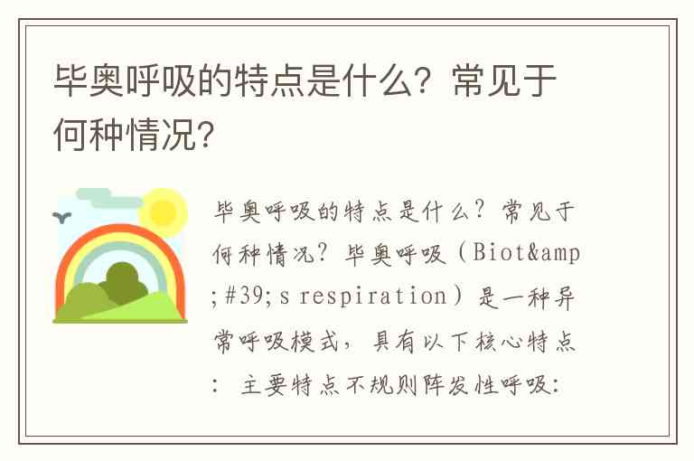 毕奥呼吸的特点是什么?常见于何种情况?