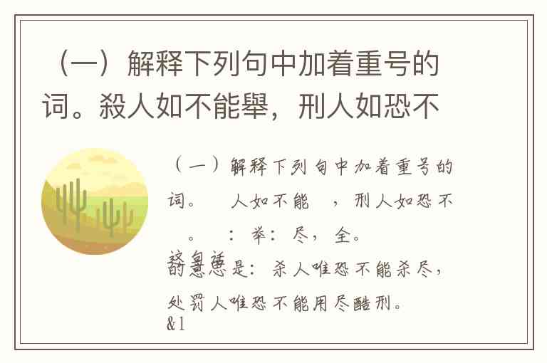 (一)解释下列句中加着重号的词。殺人如不能舉,刑人如恐不勝。舉: