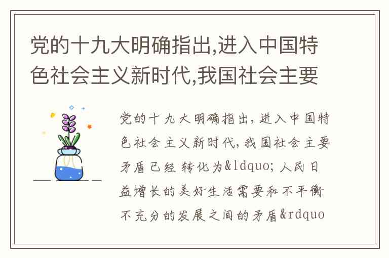 党的十九大明确指出,进入中国特色社会主义新时代,我国社会主要矛盾已经 转化为“人民日益增长的美好生活需要和不平衡不充分的发展之间的矛盾”。 ( ) A. 正确 B. 错误