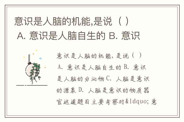 这道题目主要考察对“意识是人脑的机能”这一哲学观点的理解。