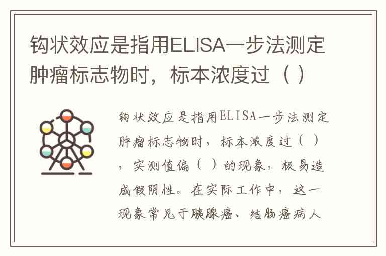 钩状效应是指用ELISA一步法测定肿瘤标志物时,标本浓度过( ),实测值偏( )的现象,极易造成假阴性。在实际工作中,这一现象常见于胰腺癌、结肠癌病人检测CA199和肝癌病人检测AFP时。 A. 低,高 B. 高,高 C. 高,低 D. 低,低 E. 高,正常
