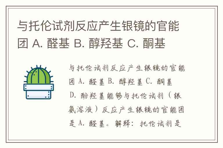 与托伦试剂反应产生银镜的官能团 A. 醛基 B. 醇羟基 C. 酮基 D. 酚羟基