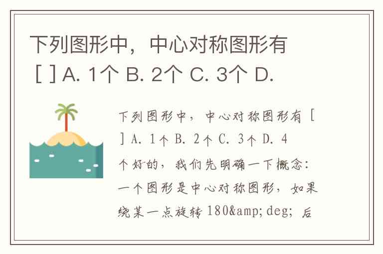 现在逐一来看常见的四种基本图形(这里虽然没有附图,但通常这种题给的四个图形可能是:线段、平行四边形、矩形、圆、正六边形、太极图、字母等,容易判断)。