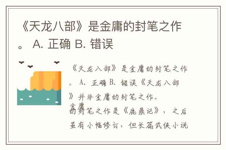 《天龙八部》是金庸的封笔之作。 A. 正确 B. 错误