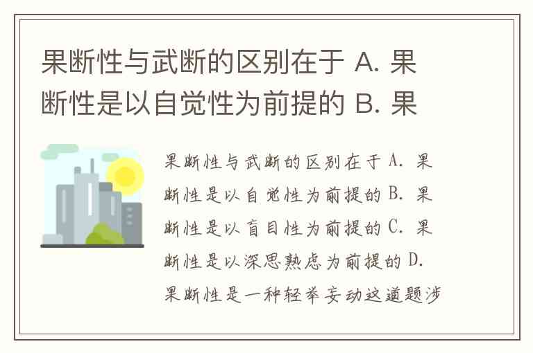果断性与武断的区别在于 A. 果断性是以自觉性为前提的 B. 果断性是以盲目性为前提的 C. 果断性是以深思熟虑为前提的 D. 果断性是一种轻举妄动