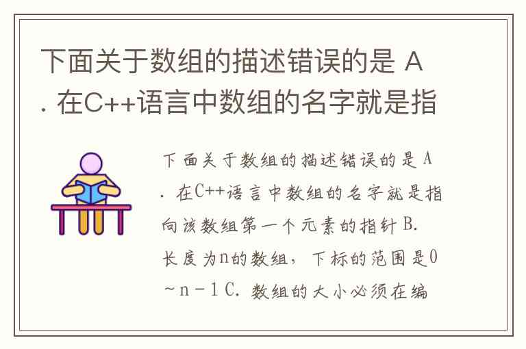 下面关于数组的描述错误的是 A. 在C++语言中数组的名字就是指向该数组第一个元素的指针 B. 长度为n的数组,下标的范围是0~n-1 C. 数组的大小必须在编译时确定 D. 数组只能通过值参数和引用参数两种方式传递给函数