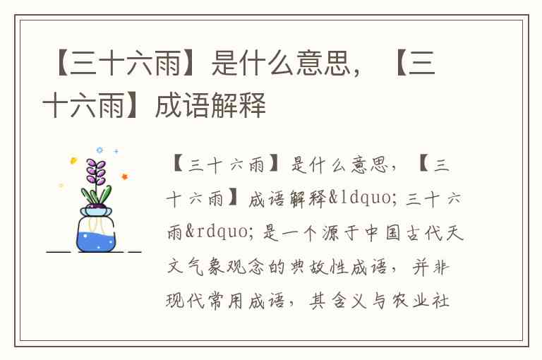 【三十六雨】是什么意思,【三十六雨】成语解释