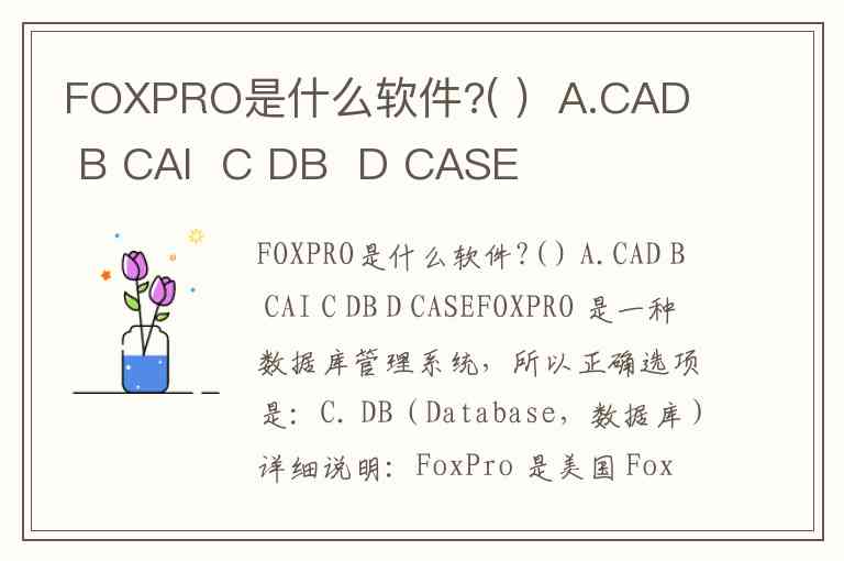 FOXPRO是什么软件?( ) A.CAD B CAI C DB D CASE