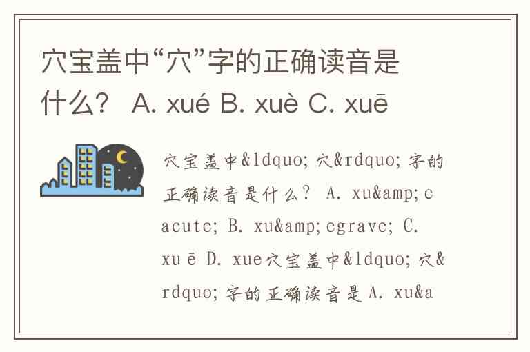 穴宝盖中“穴”字的正确读音是什么? A. xué B. xuè C. xuē D. xue