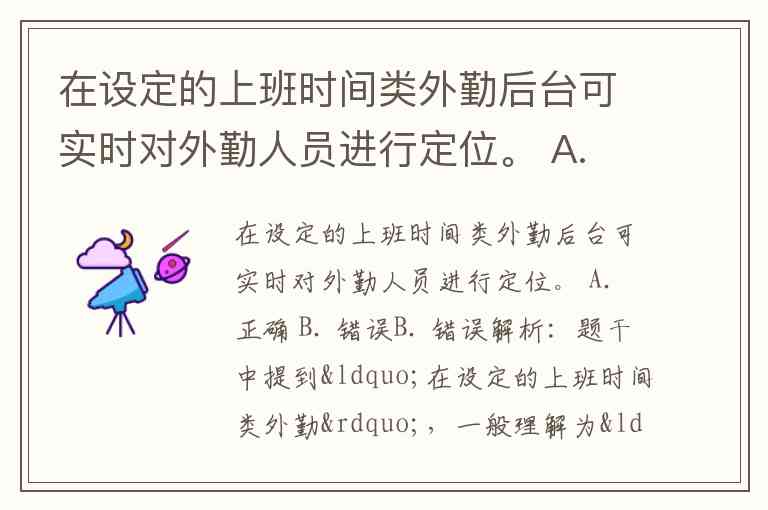 在设定的上班时间类外勤后台可实时对外勤人员进行定位。 A. 正确 B. 错误