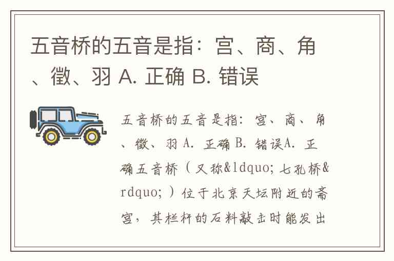 五音桥的五音是指:宫、商、角、徵、羽 A. 正确 B. 错误